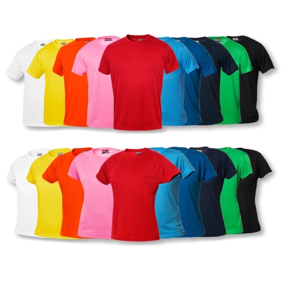 Rød t-skjorte i pustende materiale.